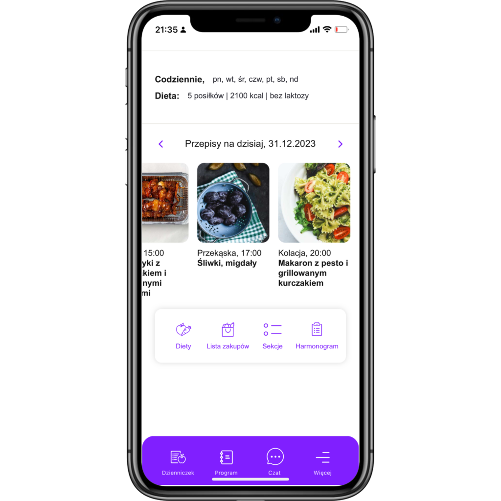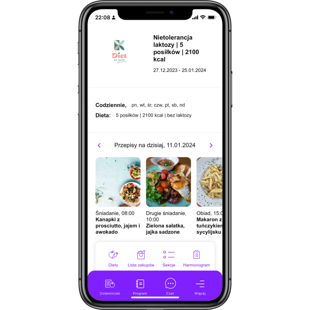 W ciągu 2 dni roboczych dostaniesz dostęp do aplikacji mobilnej, w której wkrótce pojawi się Twój indywidualny program żywieniowy z propozycjami posiłków, które możesz modyfikować między sobą, a także będziesz mieć możliwość czatu